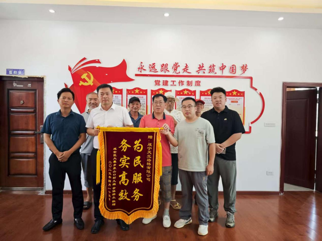 2025年7月24日,大幕鄉(xiāng)泉山口村4名村民代表來到區(qū)經(jīng)發(fā)集團,向經(jīng)發(fā)集團授予錦旗,錦旗上繡著“高效服務(wù)辦實事,熱心為民暖人心”,以此表彰其在“大幕鄉(xiāng)小田并大田”項目中取得的卓越成果。